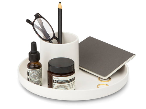 O-Tidy by Michel Charlot is a practical, versatile organiser, which combines the simple shapes of a cup and dish in one. O-Tidy is made of robust plastic and comes in a selection of colours.