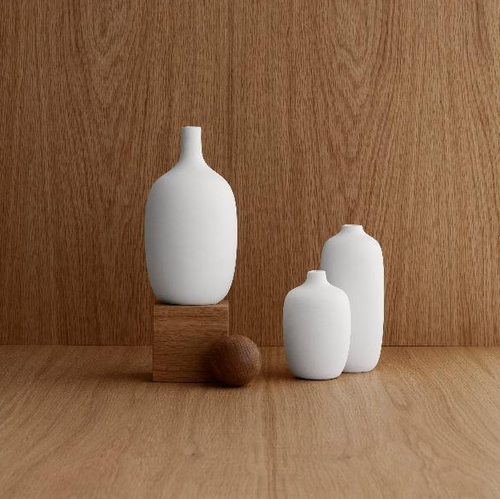 With the CEOLA Vase Ceramic by German designer Frederike Martens, the greens in your life have found a new home. The collection comprises five different shapes and sizes in either a soft white or a soft and sandy shade of khaki or a taupe, but all with the same narrow mouth presenting the plant in a beautiful upright position while making sure the stem will not bend or break. The rounded, organic silhouette of the vase is inspired by traditional Japanese metal vases.