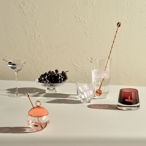 Bold and playful, the NUDE Hepburn alchemy glass is distinctive for its clean lines and glossy copper accents — the classic yet modern combination exudes glamour. Whether used to serve drinks or admired for its aesthetic value, this fine crystalline glass design will survive the test of time, both aesthetically and practically.