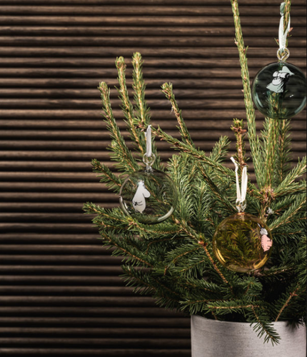 Create a cozy feeling of Christmas with these Moomin themed glass balls. Each piece comes with a satin ribbon for hanging on the Christmas tree.