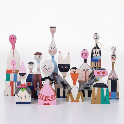 The Wooden Dolls by Alexander Girard are a large family of wooden figures representing human and animal characters. Girard designed them in 1952 for his own use as decorative objects in his Santa Fe home. These originals, which are part of the Girard estate in the holdings of the Vitra Design Museum, served as models for the current re-editions. Precisely replicated down to the last detail, the many different Wooden Dolls are still fabricated and painted by hand today, just like the vintage pieces by Alexander Girard. And even if the differences between them are only very slight: each wooden figure is a unique, individual product, truly one of a kind.