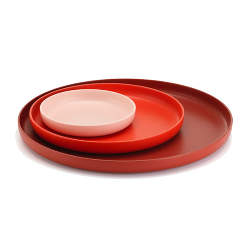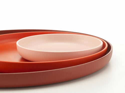 The Trays (designed in 2018) are flat dishes made of plastic, developed as a set of three in carefully harmonised colours and sizes by Jasper Morrison in line with his 'super normal' design philosophy.