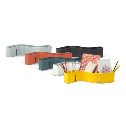 The serpentine shape of the S-Tidy organiser by Michel Charlot prevents it from tipping over, enabling safe storage of even taller objects such as tablets. S-Tidy is made of robust plastic and comes in a choice of colours.
