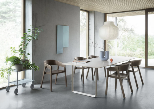 COVER chair, designed by Thomas Bentzen, is a modern reinterpretation of the classic wooden armchair. In a clever design choice, thin form pressed plywood covers are given the dual role of working as comfortable armrests, while at the same time ensuring that the chair holds together. COVER's contemporary design gives it a strong personality and with a frame produced from solid beech wood it is extremely robust and hardwearing. The chair is also very versatile, at home at the dining table, as a desk chair, in a restaurant, hotel room, or any other public setting.