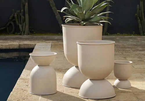 Elevating plants from the floor, our Hourglass Pot in powder-coated metal with a matte finish is a statement-making addition to any space. The small, hourglass shape makes it ideal for rooms where space is at a premium, and it’s made to withstand the elements – making it suitable for use on a terrace or balcony.