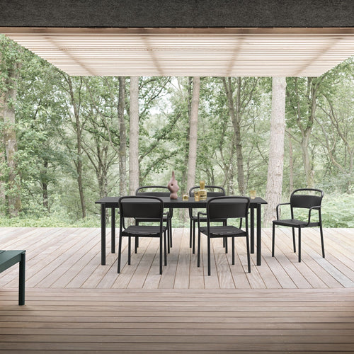 The Linear Steel Armchair is designed with clean, elegant lines and subtle details for a modern expression. Uniting invitingly organic shapes with extensive comfort and long-lasting qualities, the Linear Steel Armchair is an outdoor chair without any compromises. It is defined by its contrasts; the clean lines of its seat and front legs in combination with the ergonomic, smoothly curved backrest for an enveloping comfort. The Linear Steel Armchair is rationally designed in the way in which its seat is part of the apron, making for less material use in the production phase while making for a strong, durable design. Linear Steel Armchair stacks up to 5 chairs on the floor.