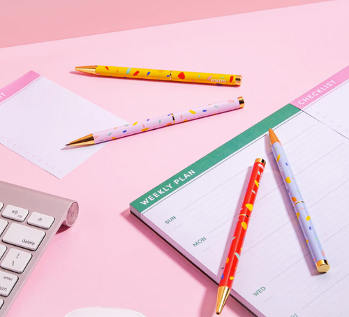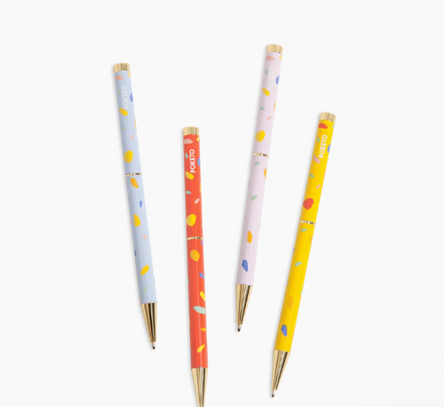 Poketo puts a twist on the popular ballpoint pen with this colorfully patterned line. Each color pops with gold-toned accents and a speckled design that's pure Poketo.