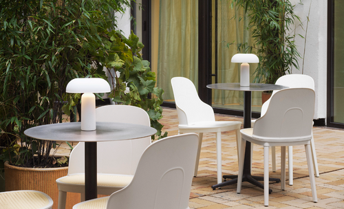Porta's flexibility is further emphasized by its mobility. The cordless and lightweight design makes it possible to bring the lamp from the kitchen to the garden to your favorite reading nook. A touch-sensitive dimmer allows for three different light settings depending on the desired mood, while a discreet USB charging cable ensures easy charging. Porta contributes cozy light to all situations and fits into both commercial and private environments.