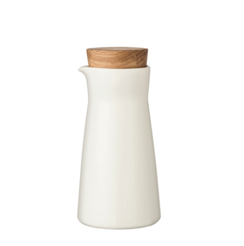 Inspired by legendary Finnish designer Kaj Franck’s philosophy of simplicity and function, each piece in the vast Teema collection is derived from three simple forms: circle, square and rectangle. A versatile collection with endless combinations that are durable and refined. It’s what one uses them for that makes it theirs. An icon of minimalist Nordic design. Originally designed in the 1940s when refrigeration was still rare, the pitcher can be used for serving and storing. Wooden lid. Clean white showcases the classic streamlined design. Perfect for serving milk, cream, salad dressing or other sauces. Makes a striking impact at any table setting. Dishwasher safe.