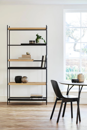 Tray Shelf is a vivid shelving system with straight lines, aesthetic symmetry and simple expression. Designed to create various possible arrangements of the tray making the shelving system dynamic and personal by choosing your favourite tray combination. Take the trays and place them on the different levels in the frame. Gaps in the shelving system are created by moving the small trays, which allow taller objects to be placed in the open space.