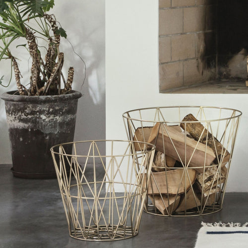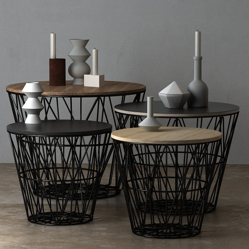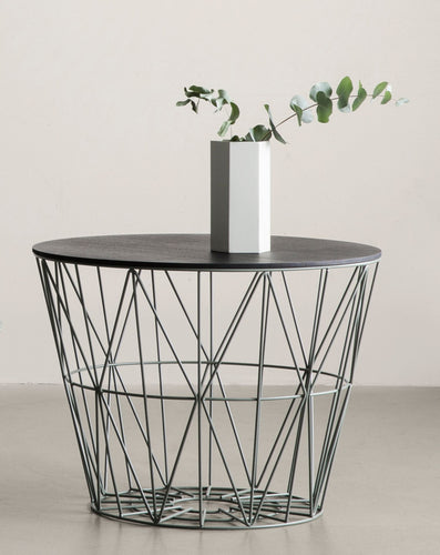 Need a basket for firewood, blankets, cushions, yarn, magazines, toys or laundry? You name it – these multifunctional wire baskets will keep it. You can even use our smoked oak tops and turn the baskets into tables. They are made of iron wire with powder coating.